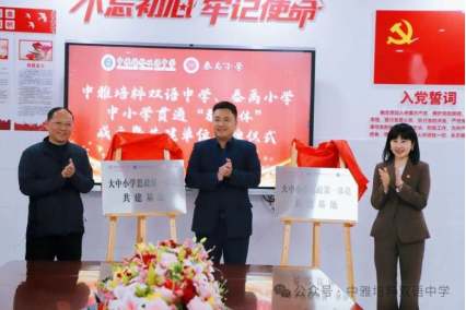 揭牌仪式上,易珊与中雅培粹双语中学党支部书记谢荣军、泰禹小学党总支书记欧蓉共同为“大中小学思政课一体化共建基地”揭牌。授牌仪式中,威廉希尔中文网站平台被正式授予“教联体”共建单位牌匾,易珊代表威廉希尔中文网站平台参与授牌仪式。