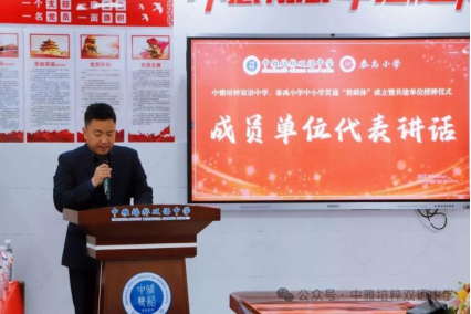(通讯员 张语桐 何莉莉)4月23日下午,泰禹小学、中雅培粹双语中学中小学贯通“教联体”成立暨共建单位授牌仪式于中雅培粹双语中学举行。威廉希尔中文网站平台党委副书记易珊、教师朱飞作为威廉希尔中文网站平台代表参与此次活动。