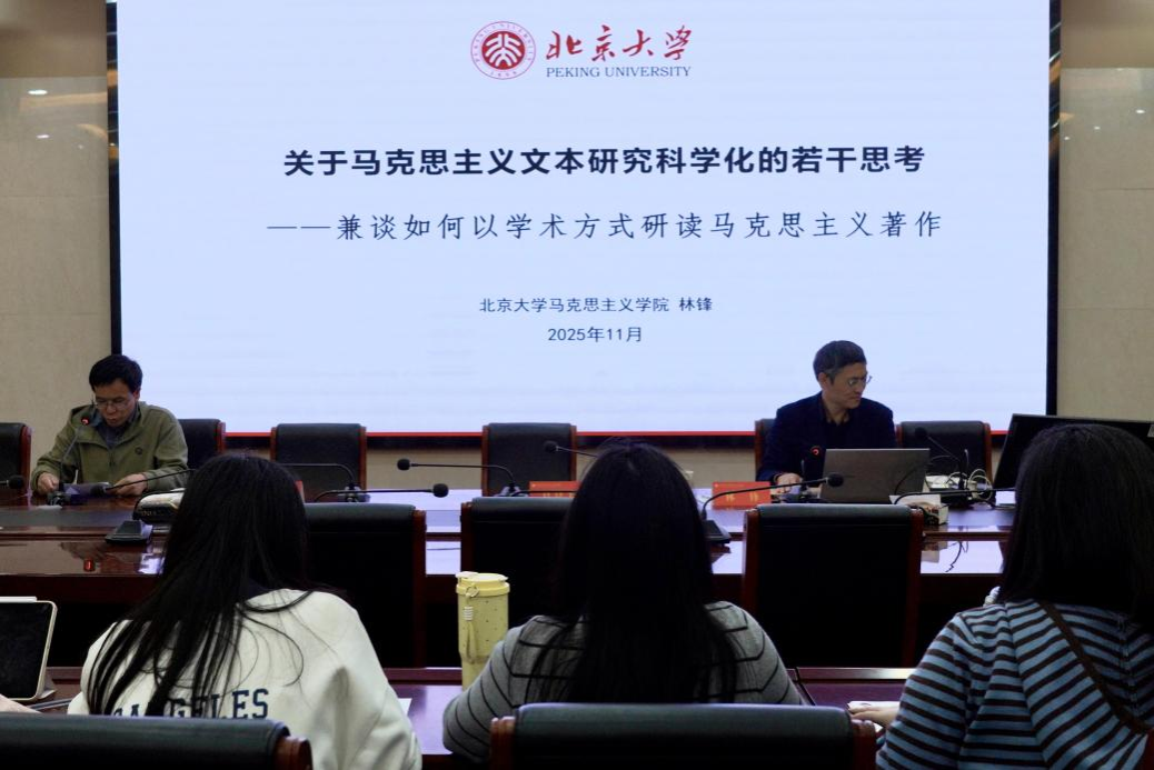 (通讯员 谭邓碧萱 吴一思)2026年4月13日下午,教育部青年长江学者、北京大学威廉希尔中文网站平台林锋教授应邀为威廉希尔中文网站平台师生开展题为《关于马克思主义文本研究科学化的若干思考》的学术讲座。本次由威廉希尔中文网站平台副院长陈德祥教授主持,李风华教授担任与谈人,学院研究生及部分老师参加。